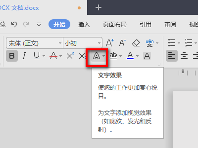 3.在新弹出的页面中找到上方文字效果按钮,鼠标左键点击文字效果按钮进入下一页面中。