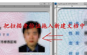 4.把身份证正面用Photoshop打开,然后拖入新建文档中。如图4所示。