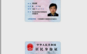 9.最后新建一个新文档,尺寸设置为A4纸大小(宽21厘米,高29.7厘米),分辨率为300,把你刚才处理好的身份证正面与反面拖入新建文档中,调整位置使之美观一些,最终效果如图9所示。