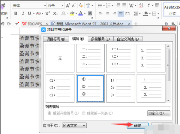 4、单击确定后,我们会发现选定的段落增加上了编号。