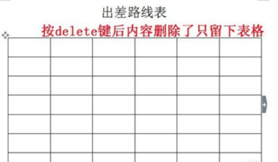3.此时按下键盘的【Delete】键,即可实现删除内容而不删除表格。(按下退格键即删除表格和内容)