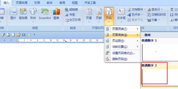 单面插入----页码----页面底端----普通数字2即可,如图所示。