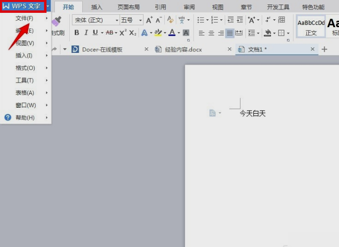 2、然后点击软件左上角的WPS文字字样,会弹出一个下拉菜单。