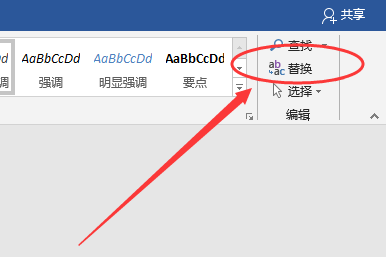 2、然后在Word的上方工具栏中的“开始”选项内找到“替换”选项。