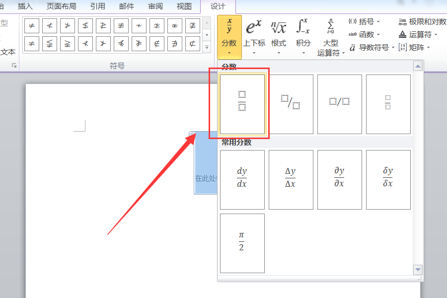 5、在弹出框里选择想要的分数格式,这里是上下结构,选择第一个则可;