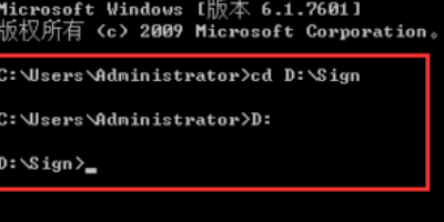 3、按“WIN+R”,打开【运行】;输入“cmd”,进入D:\Sign目录;