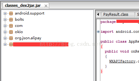 jd-gui:查看APK中classes.dex转化成出的jar文件,即源码文件