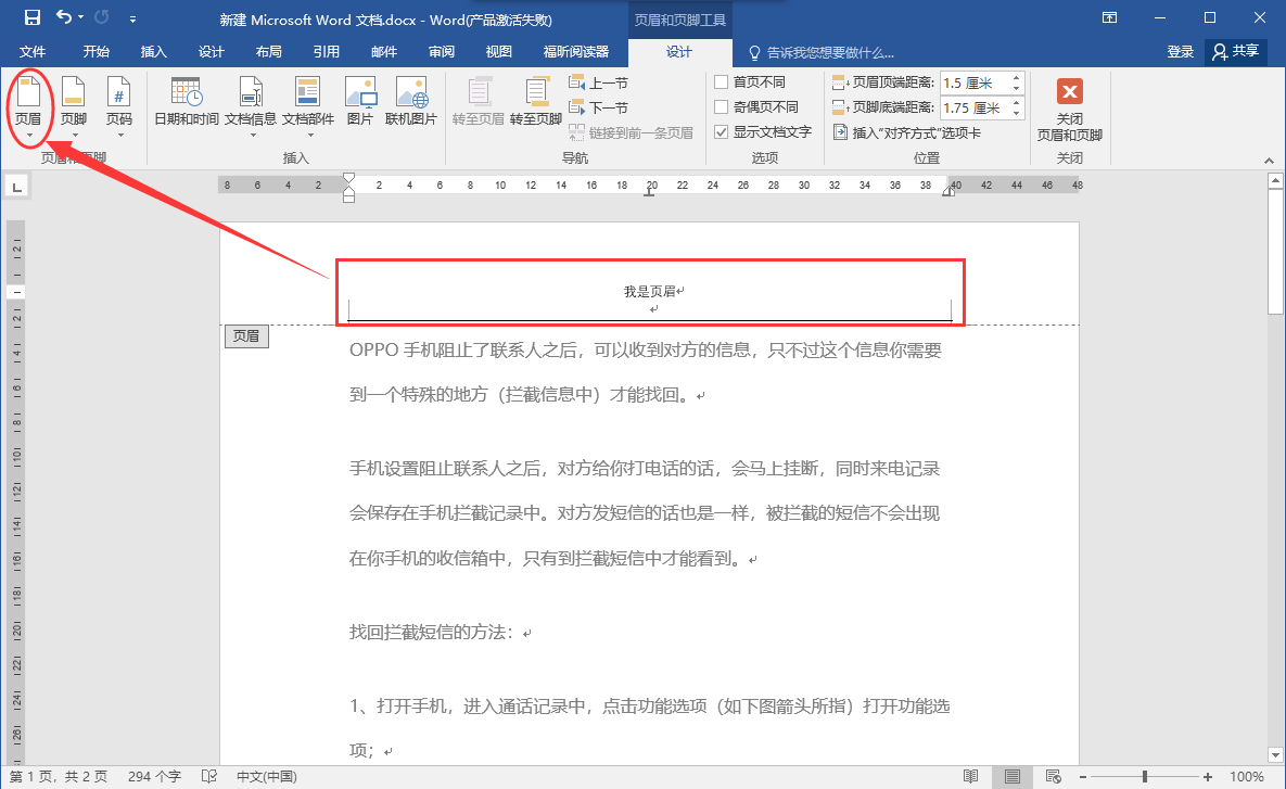 先设置页眉: