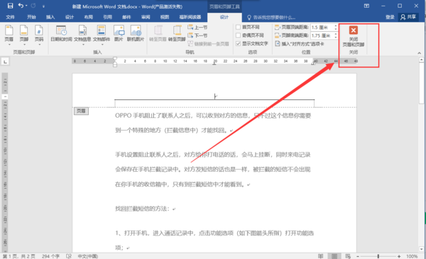 4、最后,点击右上角的“关闭页眉和页脚”编辑模式即可;