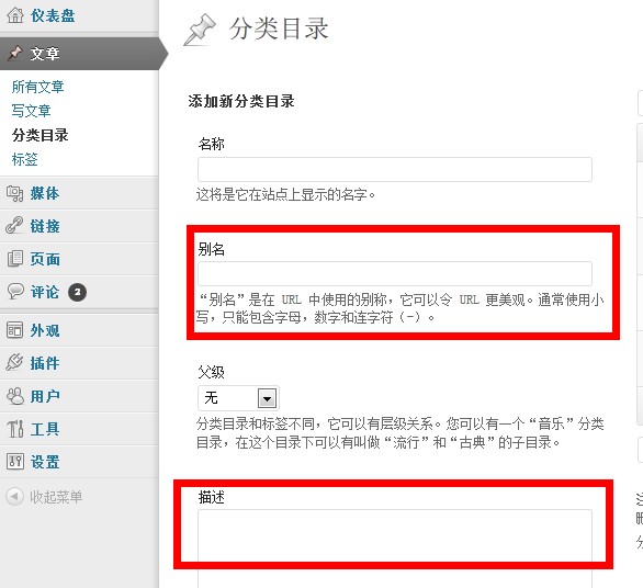 在别名中,你可以设置这个栏目的链接,比如设置生活故事的别名为lifestory,那么这个栏目的链接就是www.xxx.com/category/lifestory,而描述中的内容,则会被提取作为页面的描述标签内容。