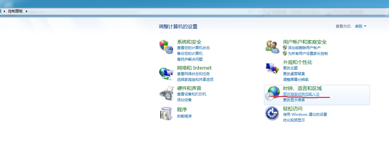 1、单击“控制面板”下的“更改键盘或其它输入法”