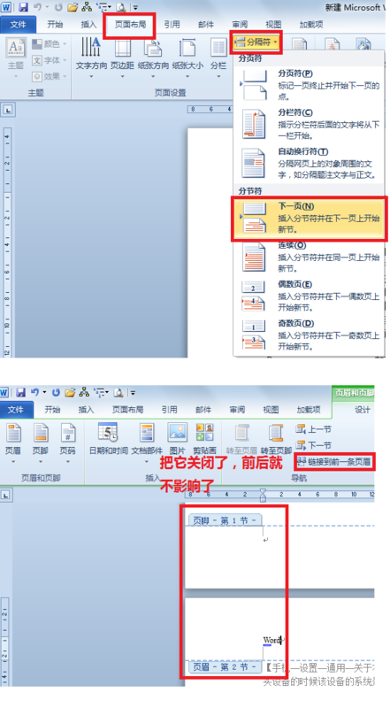 WORD分隔符和页眉