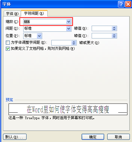 3、切换到字符间距选项卡,在缩放处选择66%即可,如图所示。