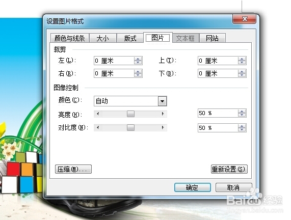 3、设置图片格式的方法有两种:一是执行“格式”→“图片”菜单命令,出现“设置图片格式”对话框,进行设置;二是可以使用“图片”工具栏中的设置图片格式按钮。