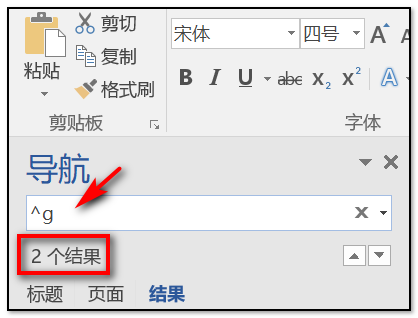 4、点击查找功能以后,在左边出现的导航对话框中输入“^g”公式,下发即可出现图片的数量结果。