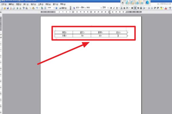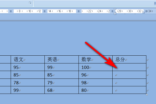 3、然后将光标移到需要计算总分的表格里面。