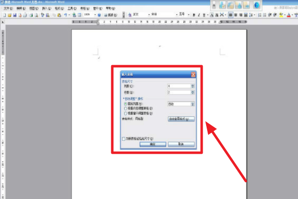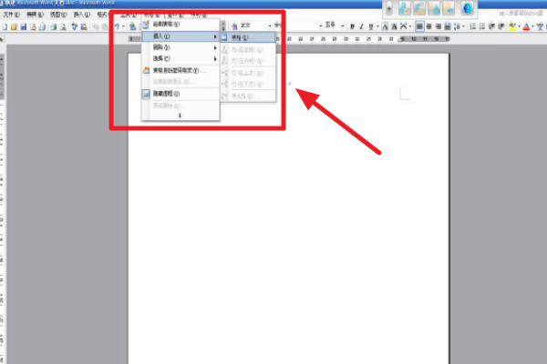 1、首先在word中新建表格,点击菜单栏中“表格”下面的插入命令中选择表格命令。