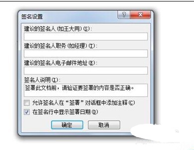 4、输入相关内容,然后可以看到在word中多了一个签名框