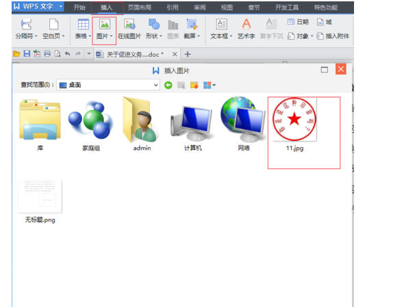 三、然后,通过路径在电脑上找到,电子公章的图片,选择打开。