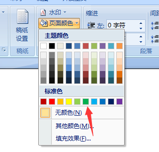 4、在打开的调色板中找到绿颜色,单击该颜色即可以完成页面背景色的更改。