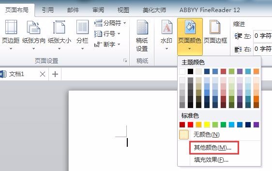 1、点击“页面布局”中的页面颜色,然后选择“其他颜色”,如图: