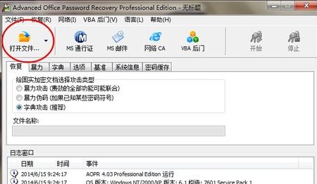 2、然后就可以看见软件界面,点击左上角的“打开文件”,找到要打开的Word,开始破解;