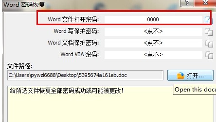 3、完成后就可以看见word设的密码;