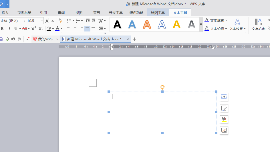 步骤一:打开wps文档,点击文本框图标,然后选择横向文本框按钮;