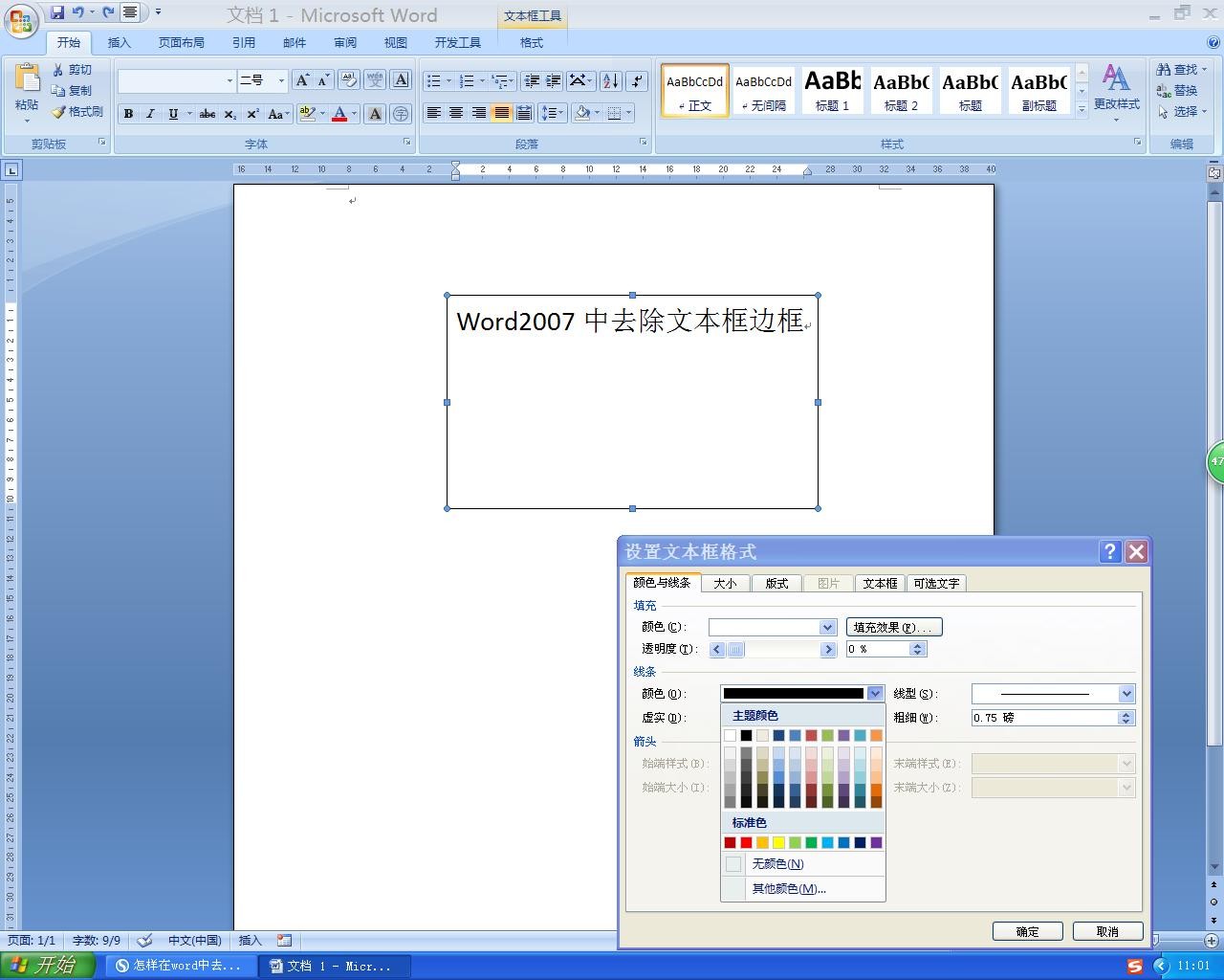 在word2010里要将文本框的框去掉,具体步骤如下: