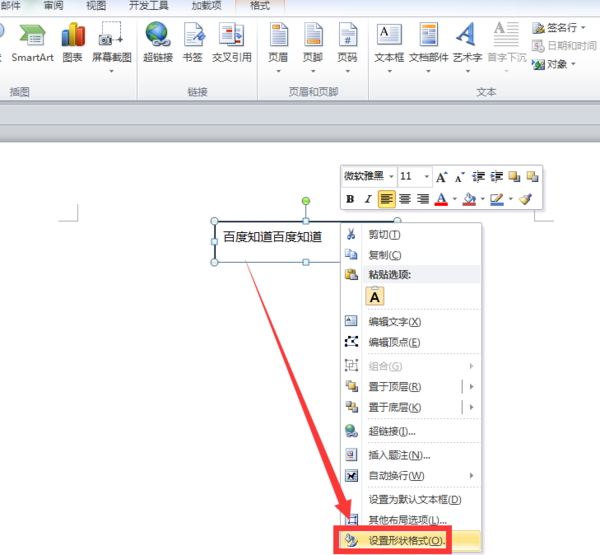 2、然后我们在选中文本框“右击—设置对象格式”。