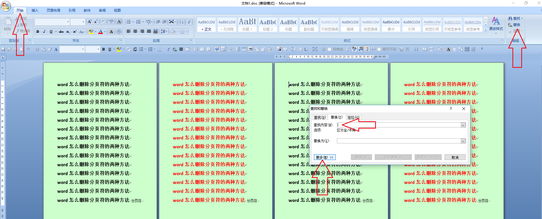 方法二:用“替换”命令删除。