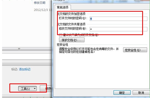在密码框里填上你的打开密码及修改密码后,保存就OK了