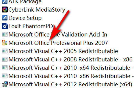 3、进入到卸载程序的页面之后,在下面找到office2007的名称(哪个版本就选择相对应的版本即可),右键单击这个选项。