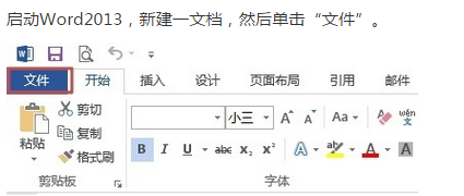 1 ,启动Word2013,新建一文档,然后单击“文件