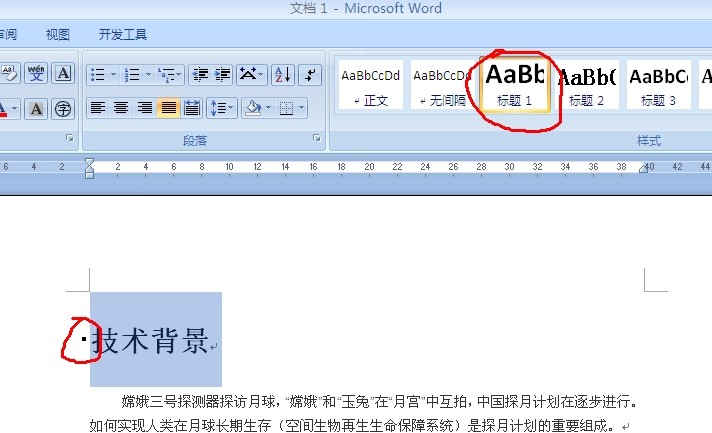 鼠标停在不同分隔名想提取到目录中的那一条,点标题1