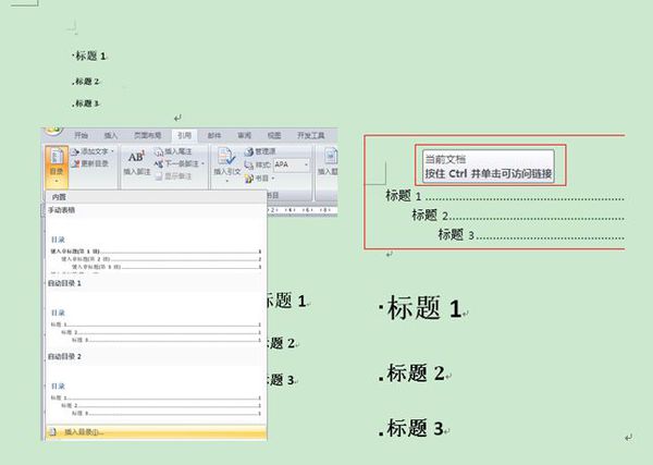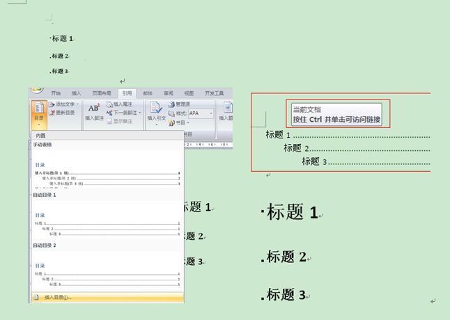 作完上面工作把鼠标停在首行点引用,点引用,点目录,选一个自动目录就可以了