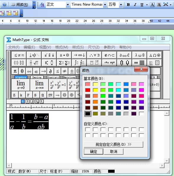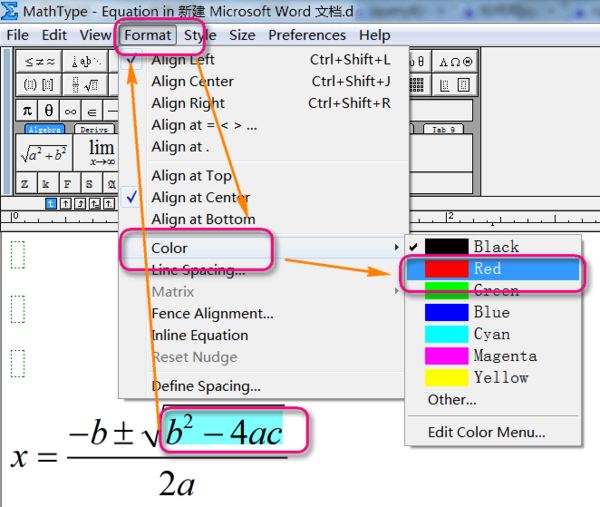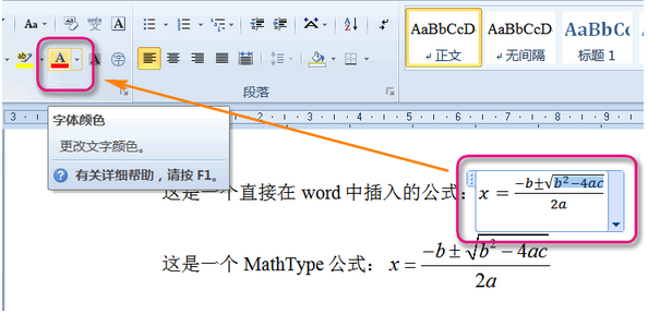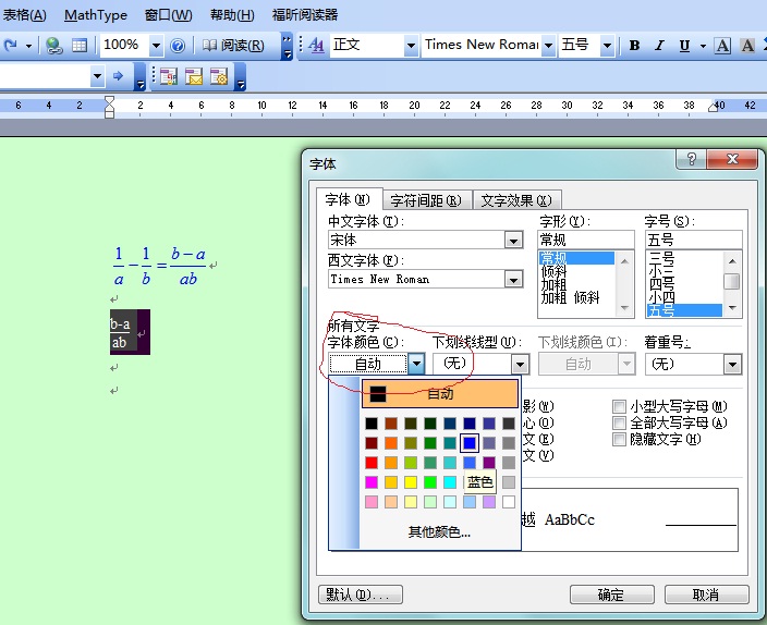 设置mathtype插入word的公式的颜色