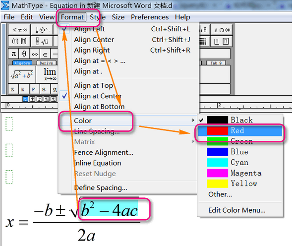 方法一:MathType中公式颜色的修改