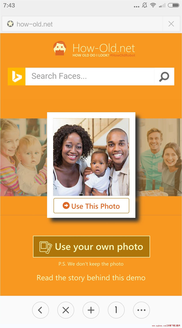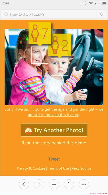 微软颜龄识别网站 -How-Old.net ,目前没有手机版。