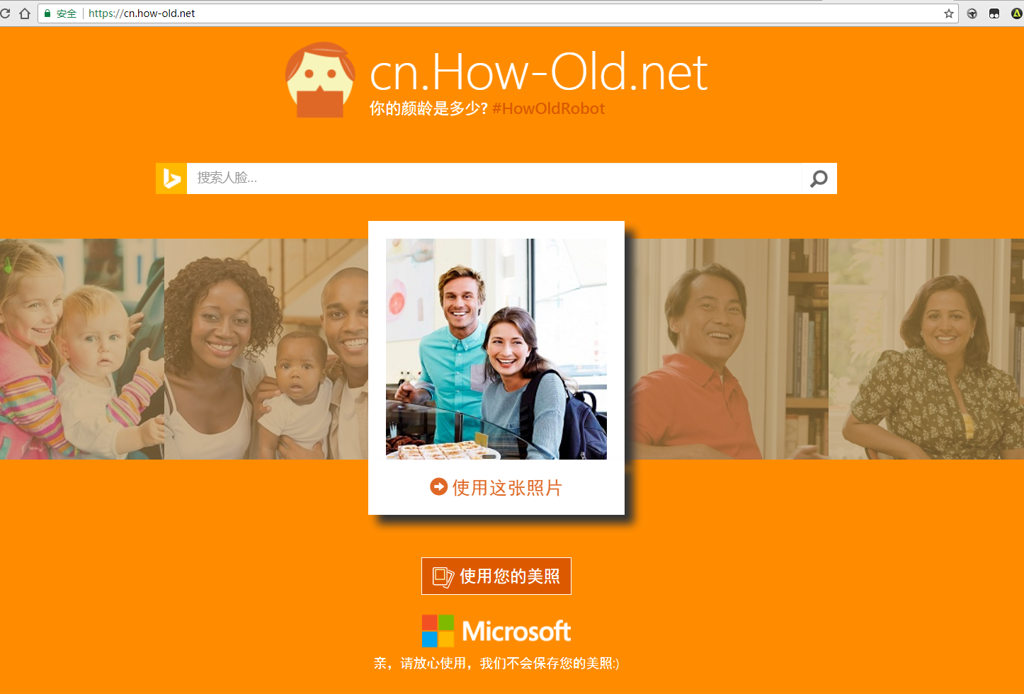 微软推出了一个颜龄识别机器人网站How-Old.net,通过大数据和机器识别技术,判断照片中人物的年龄,没想到立即火爆全球,一时间社交网络上“攀比”成风。