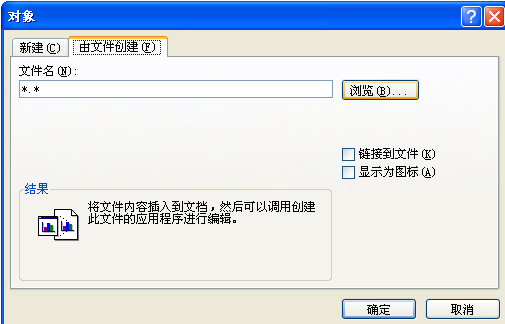 2、弹出插入对象对话框,点击“由文件创建”-->“浏览”;