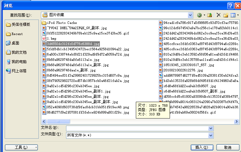 3、弹出浏览对话框,选择要插入的文件 ,单击插入按钮;