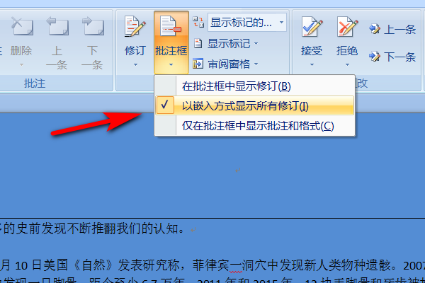 (2) 在“审阅”工具栏上,单击“显示”下拉菜单,