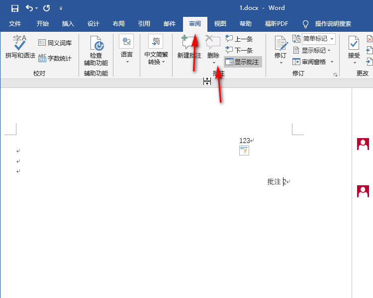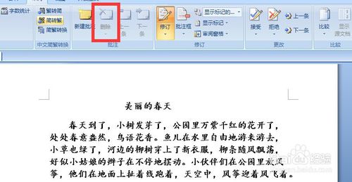 这时删除键变成了灰色,证明文中没有批注了。