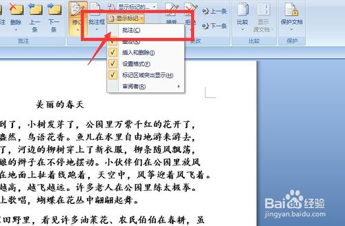3、点击“显示批注”功能