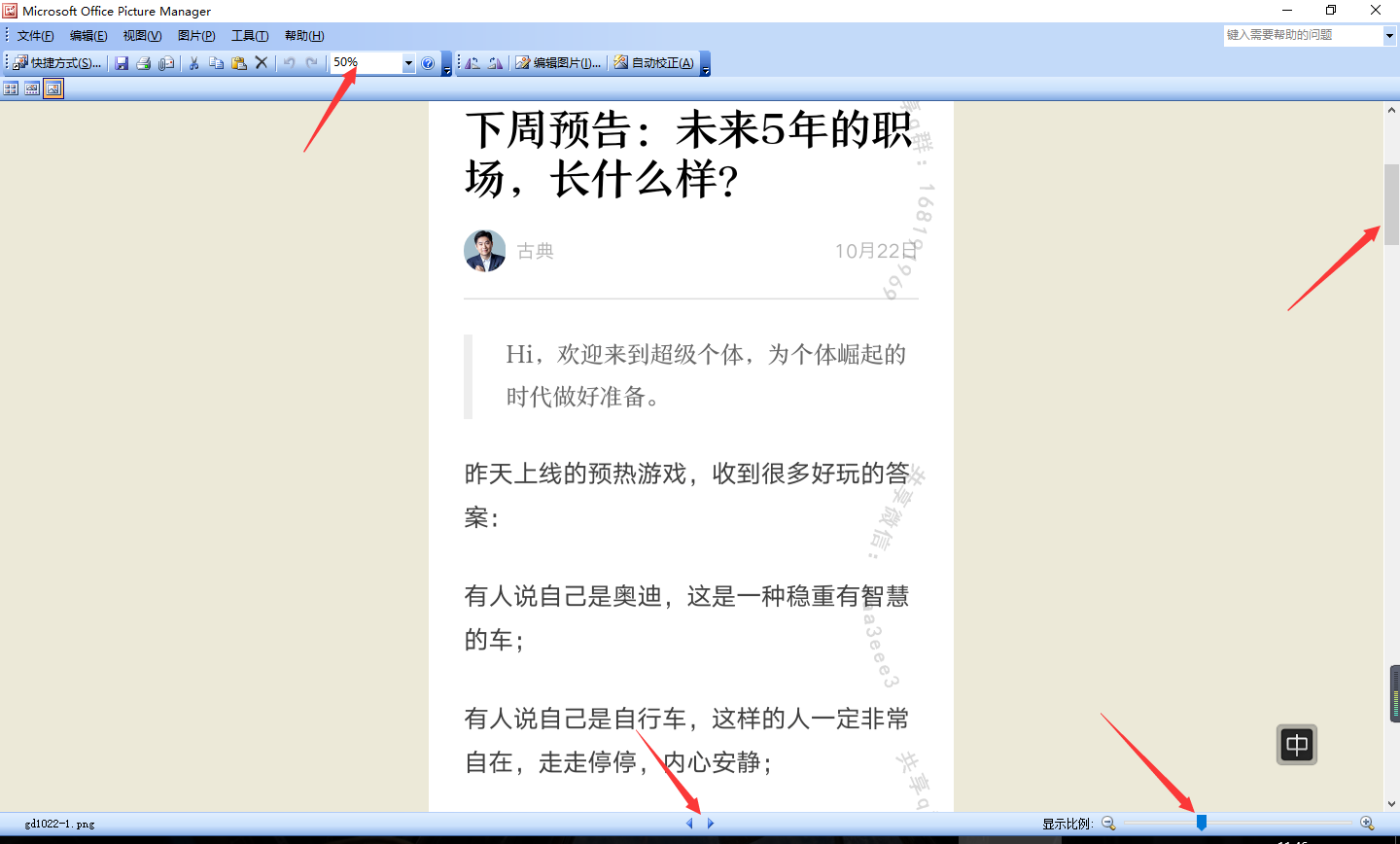 网络上下载了一个JPG图片,打开图片很窄很长,有什么办法或者软件可以处理下,方便阅读其文字内容的?