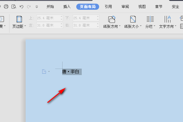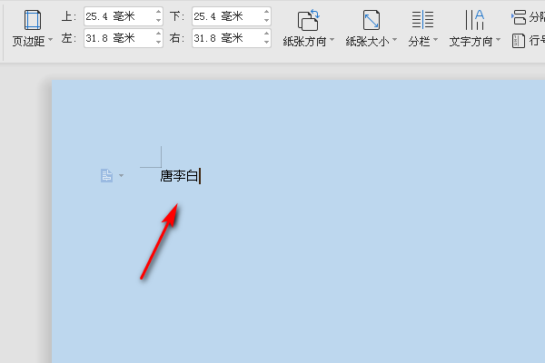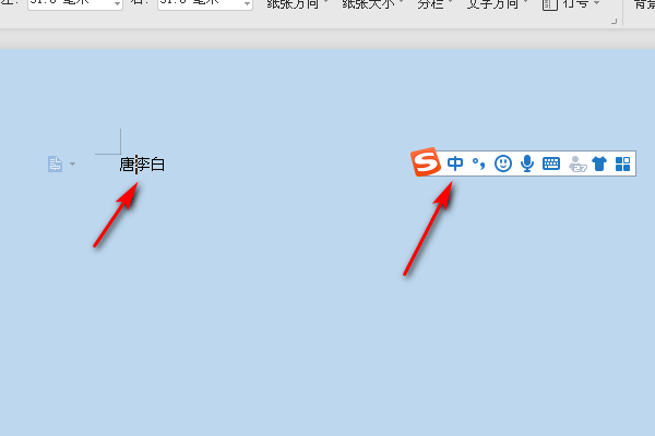 2、打开之后,在文档里面输入需要的文字内容,如下,需要在唐李两个字符之间插入一个圆点符号。