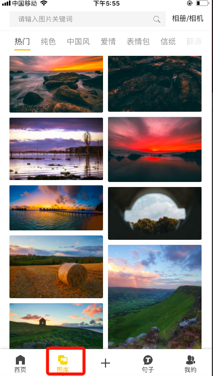 打开图曰(yue),点击下方的图库,可以选择图曰图片库的图片,可以点击右上角选择本地相册的图片