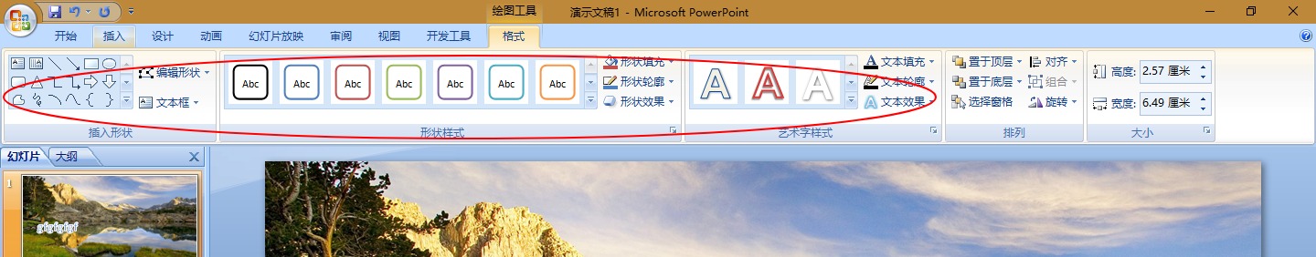4、点击格式,选中插入的文字,然后选择自己想要的文字效果、艺术字样式。