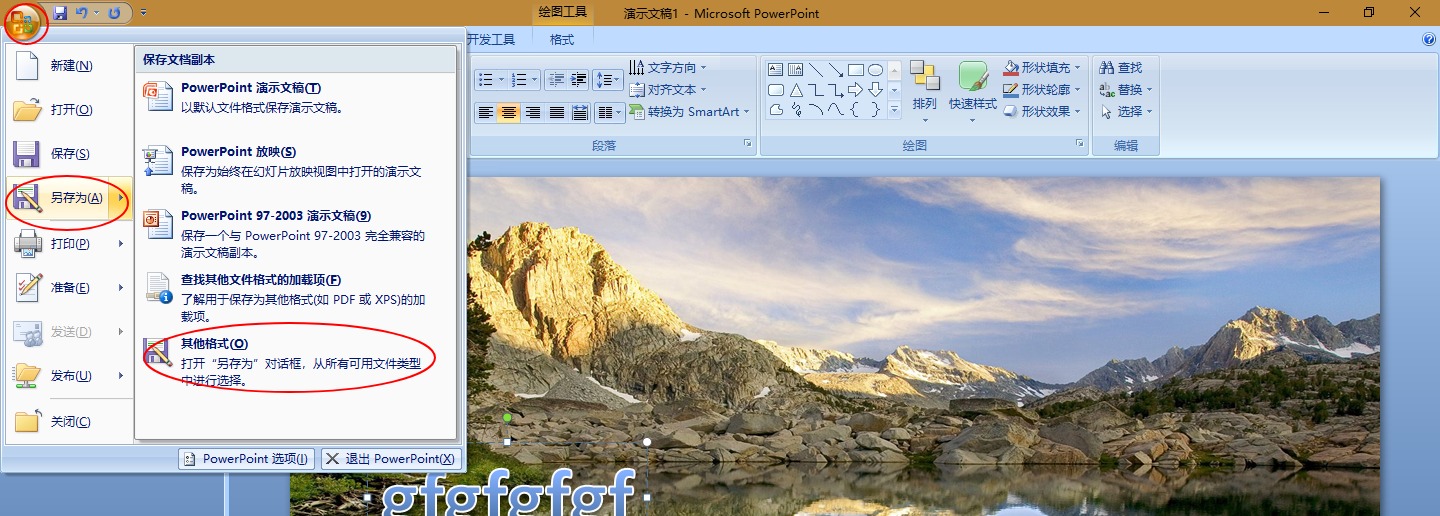 5、修改完成后,点击左上角的Office图标,选择另存为,然后选择其它格式。